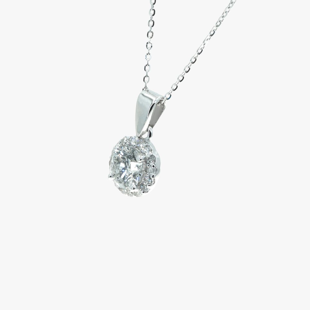 This exquisite engagement ring features a luxurious 14kt white gold band adorned with brilliant round cut diamonds, totaling 1.38CTW, elegantly set in a prong setting to maximize their brilliance.