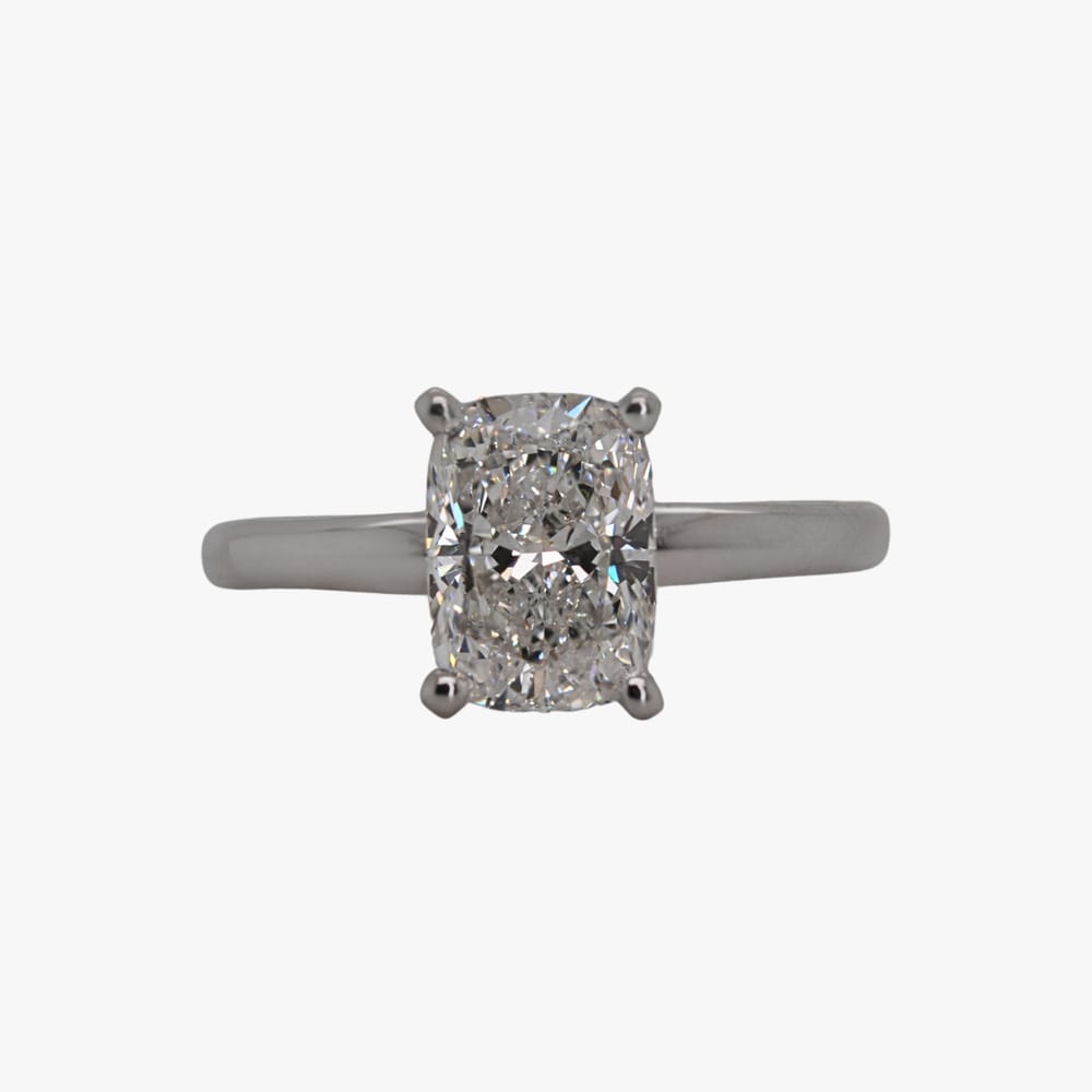 This exquisite engagement ring features a single lab-grown diamond in an elegant elongated cushion cut, set in polished 14K white gold, ideal for the modern woman.