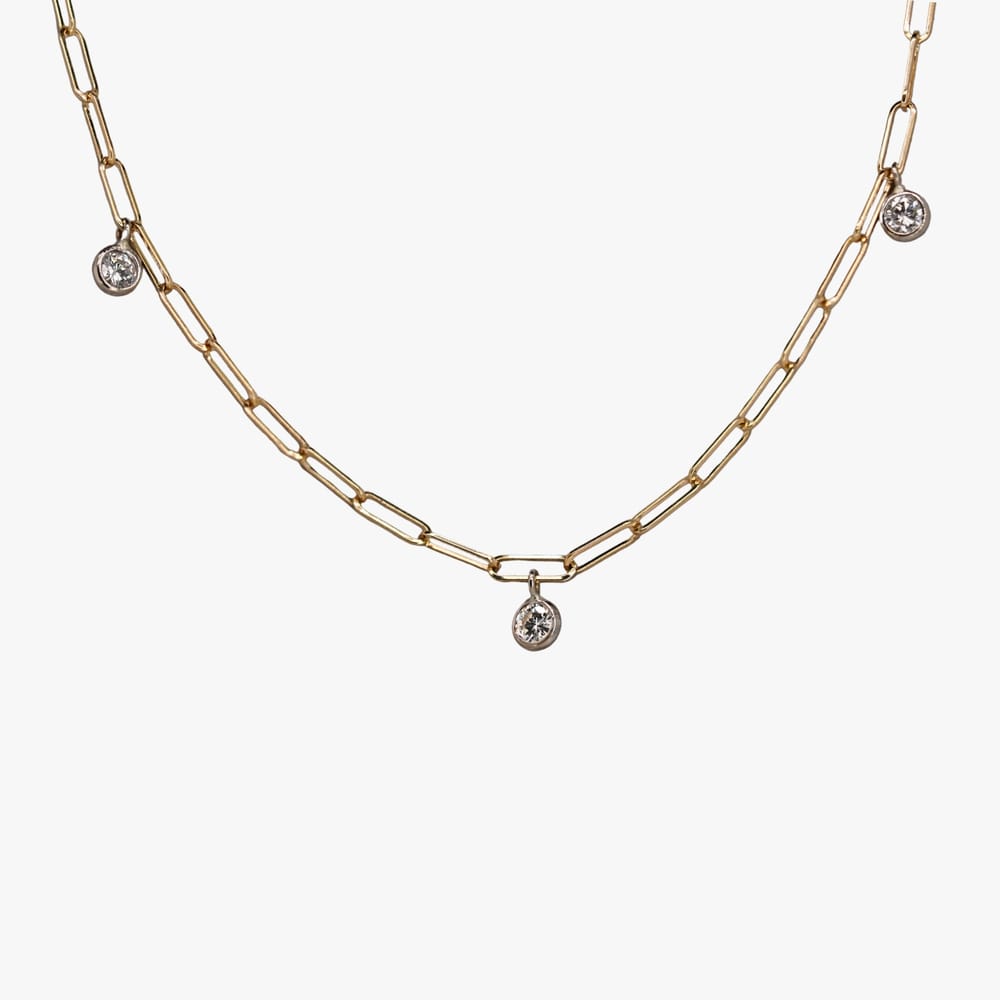 This elegant necklace features a captivating arrangement of five round brilliant cut bezel set diamonds, set in exquisite 14K white gold, offering a total weight of 0.50 carats.