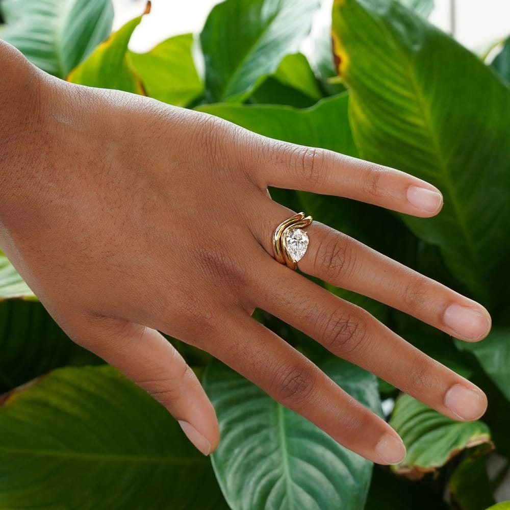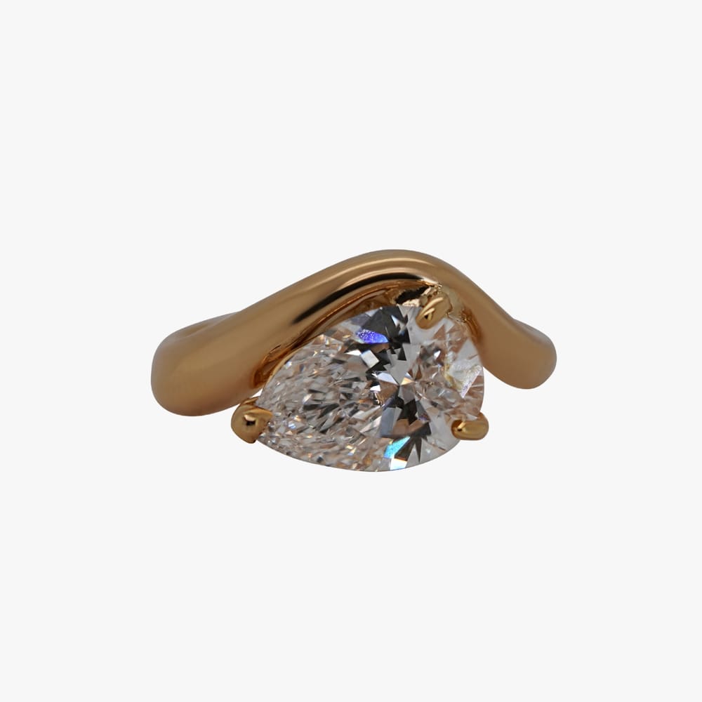 This elegant engagement ring features a single exquisite pear-shaped lab-grown diamond set in polished 14K yellow gold, designed for the modern woman.