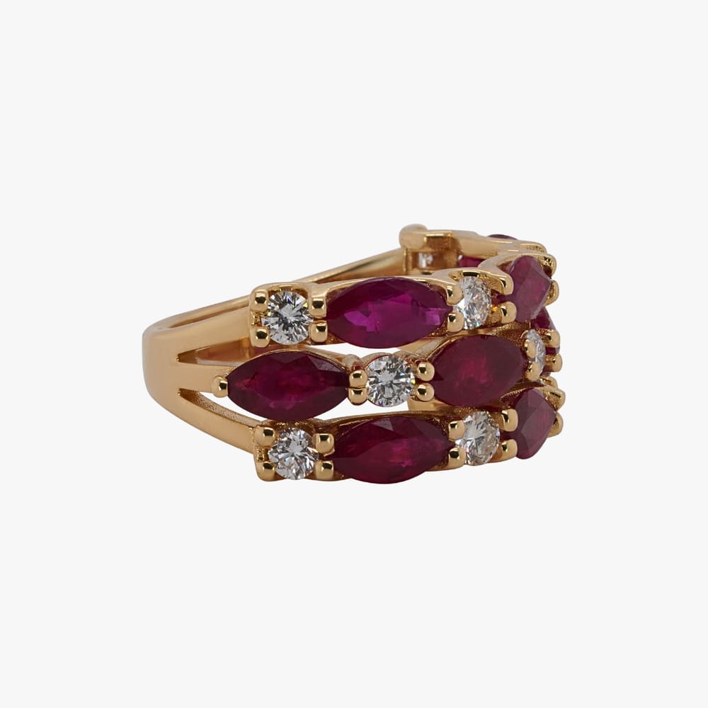 This elegant ring features a breathtaking combination of pave diamonds and vivid rubies, set in luxurious 18K yellow gold, making it a perfect accessory for any occasion.