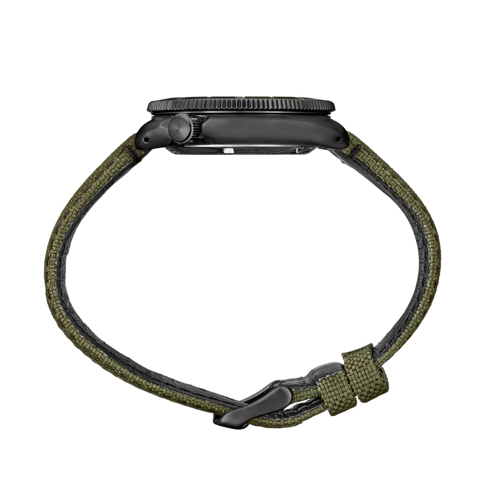 Based on an iconic Seiko design, with sleeker, more compact lines for everyday wear, this versatile watch features a textured green dial with red accents, date calendar, and LumiBrite hands and markers. In stainless steel with black hard coating, secure screwdown crown and scratch-resistant sapphire crystal, this exceptional timepiece includes a green nylon/leather hybrid strap.