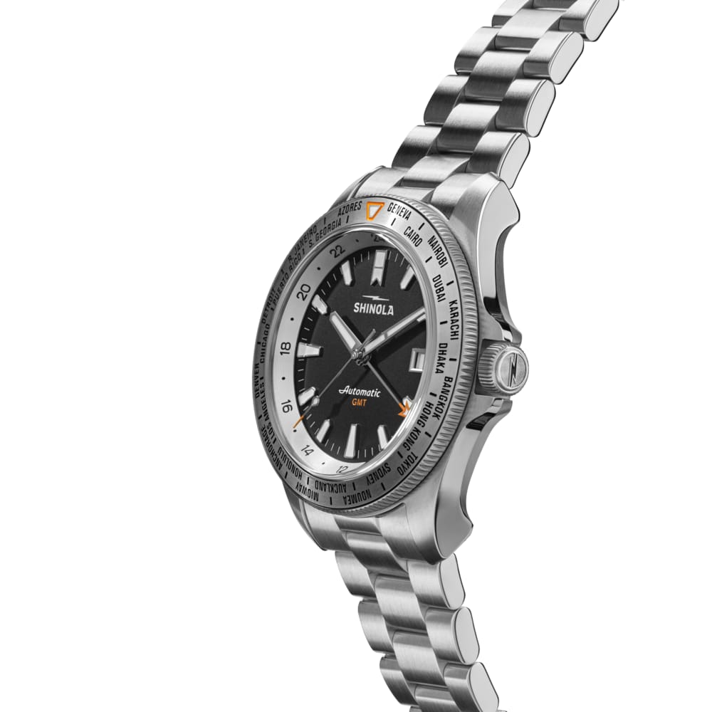 Wear the world wrapped around your wrist with the Worldtimer GMT: The classic traveler’s watch, reimagined through iconic Shinola Monster design and elevated with another iconic globe-trotting touch.