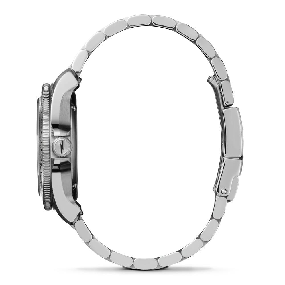 The hands and calendar aperture are driven by the Swiss-made Sellita SW330-2 automatic movement. It’s all brought together by the stainless-steel case and a polished and brushed quick-release stainless steel bracelet that features quick-release removeable links—making it easier than ever to adjust the bracelet with just a press of a button.